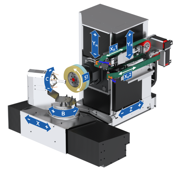 - 6 Achsen numerisch gesteuert, davon 5 simultan