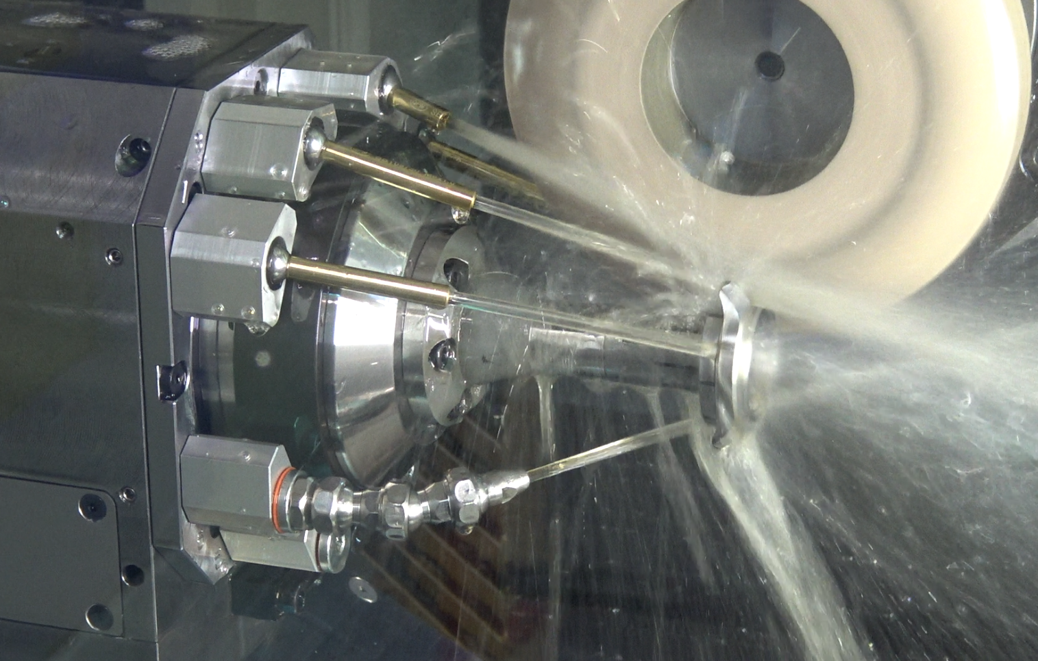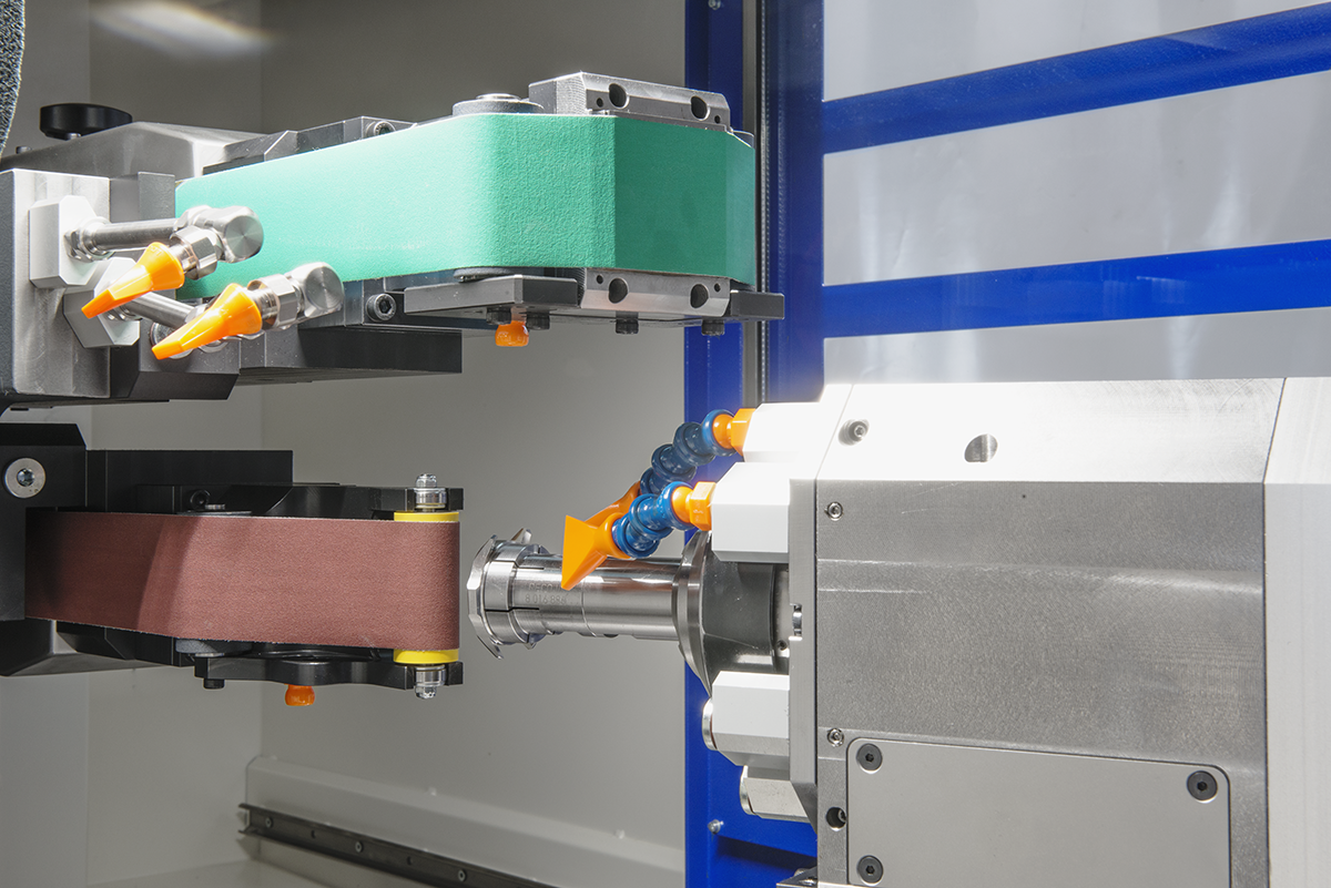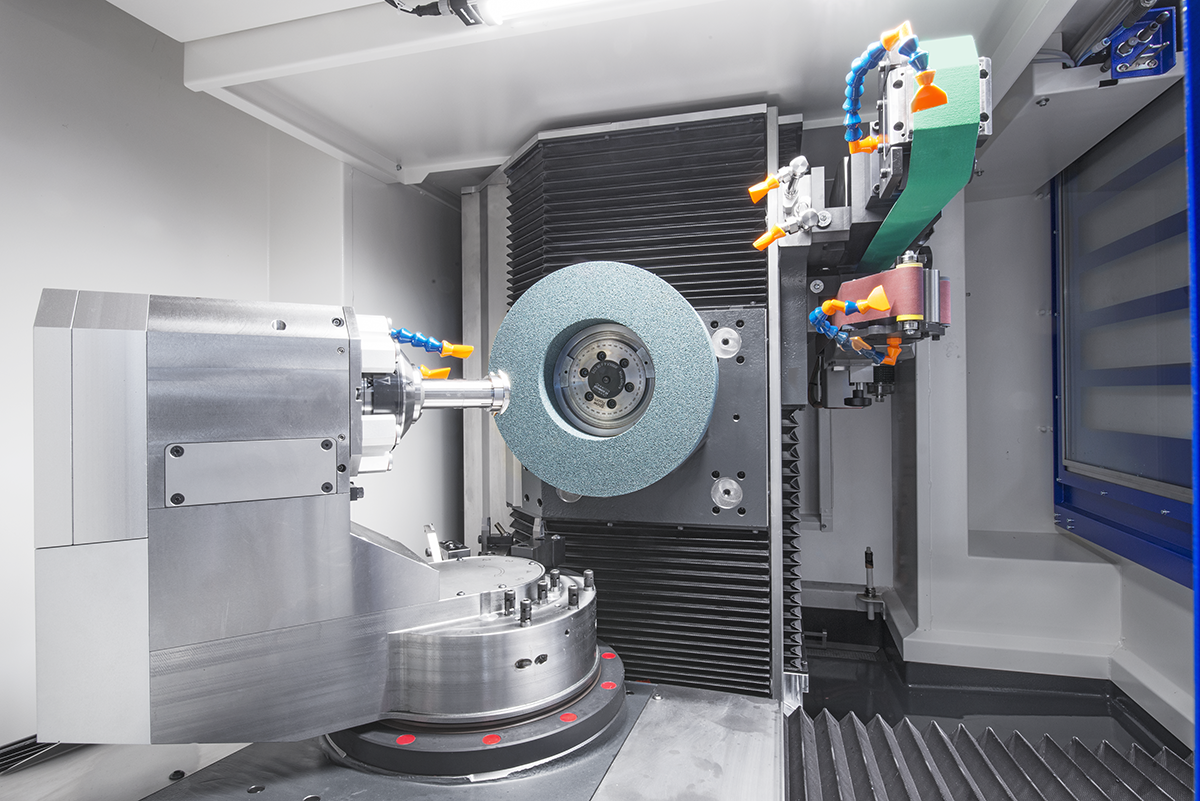 Diese hochsteife Maschine ist ausgestattet mit einer 18.000 min?¹ Werkzeugspindel, einem 20-Positionen Werkzeugmagazin und zwei schwenkbaren Schleifbandeinheiten, um Präzision, Wiederholbarkeit und Finish-Qualität bei allen Schleif-, Lapidier-, Satinier- und Fräsoperationen zu gewährleisten. Das automatische Abrichten der Schleifscheiben und CNC-gesteuerte KSS-Kühlung sichern optimale Produktivität.