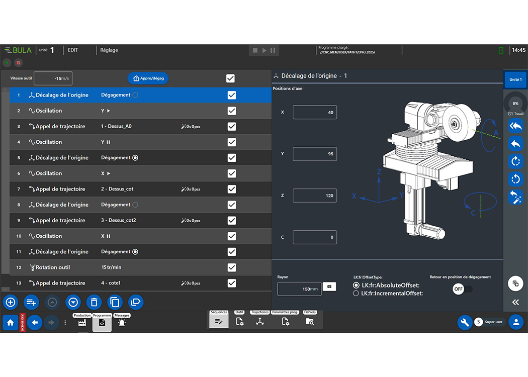 - 3D Assistente alla programmazione grafica con visualizzazione dinamica del punto di contatto su macchina e offline