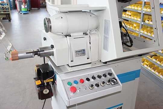 - La pression de meulage est donnée sur le chariot par ressorts réglables. Un comparateur assure la lecture de l?avance du chariot jusqu'à la butée de profondeur